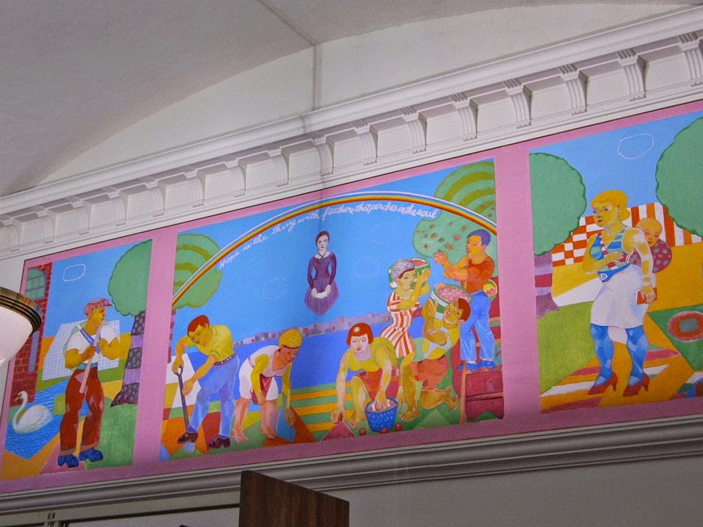 I forgot: John Grillo died and Mom wanted to see his mural which is hanging in the Library. I took some quick shots. He was born in Lawrence, MA 90 years ago.